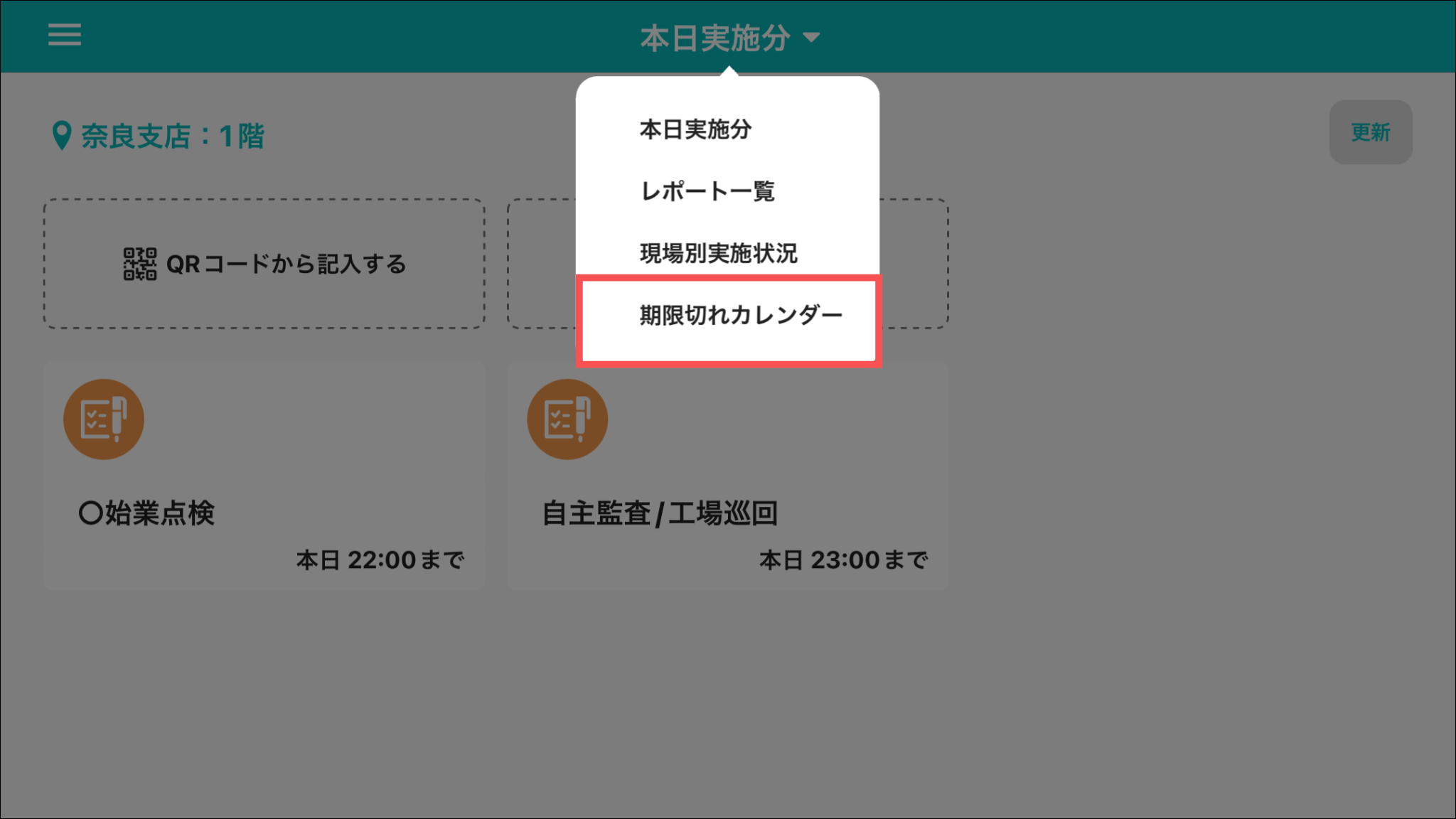 現場ごとの「未実施」もしくは「記録中」のスケジュールが表示されます。