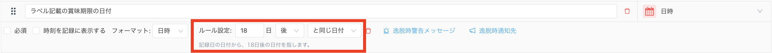 入力した日付が、実際の賞味期限と一致していることを確実に確認するためには、「日時」フォーマットのルール設定を活用します。