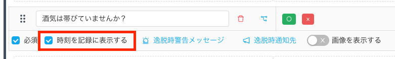 法令で定められたチェック項目を遵守することはもちろん、カミナシ上で記録として保管ができるため、証跡としての役割も持たせるため「時刻を記録に表示する」にチェックを付けています。
