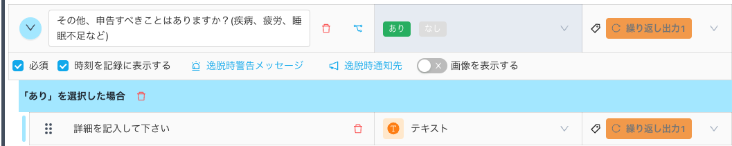 「条件分岐」機能を使うことで、チェック項目以外に申告すべき事項がある場合にのみ