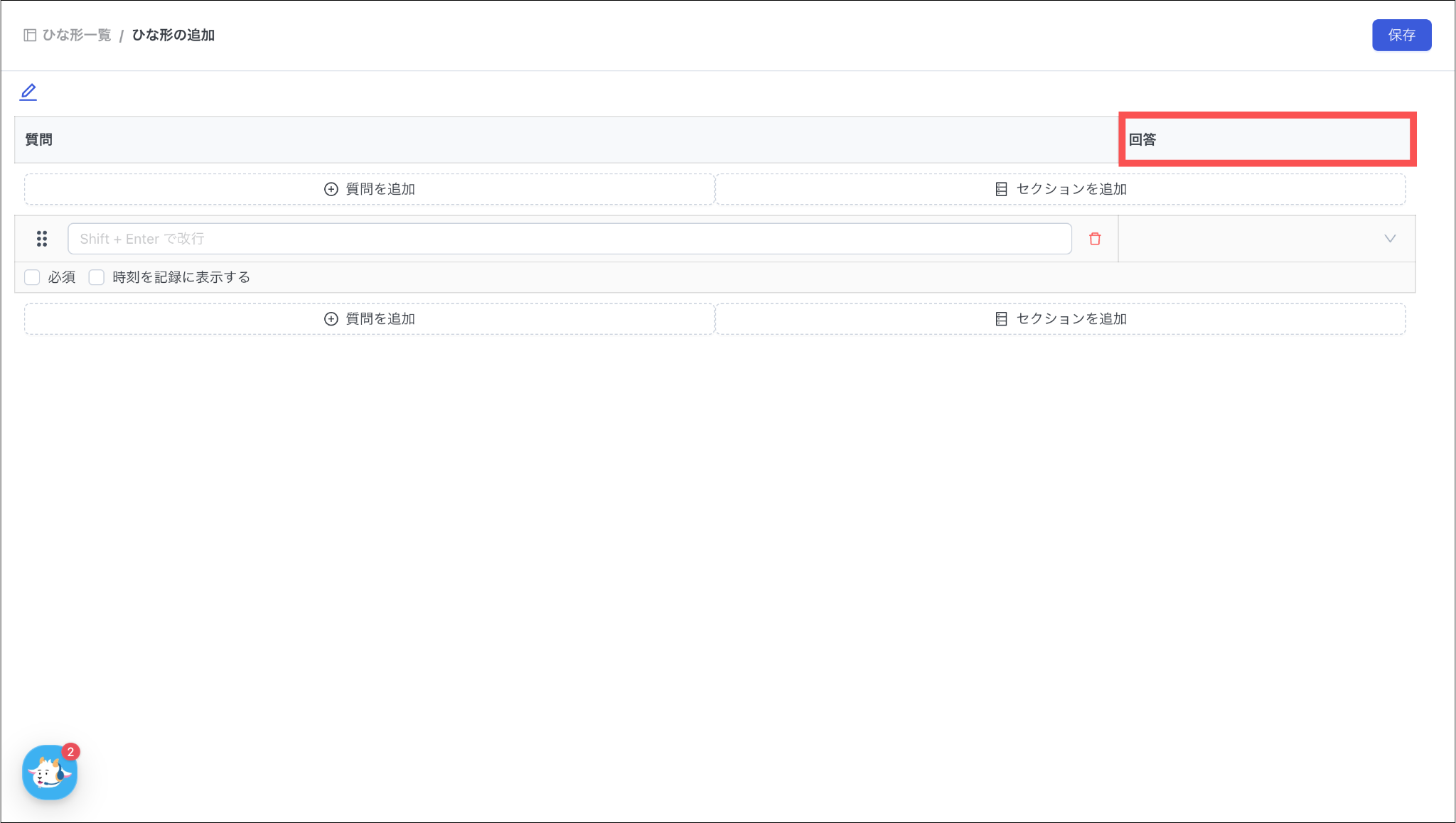 回答を追加:選択肢を追加する