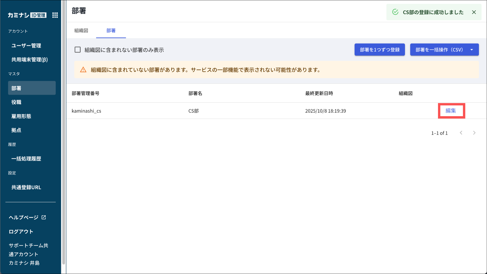 編集方法については「部署・役職・雇用形態・拠点を個別に編集する」をご参照ください。