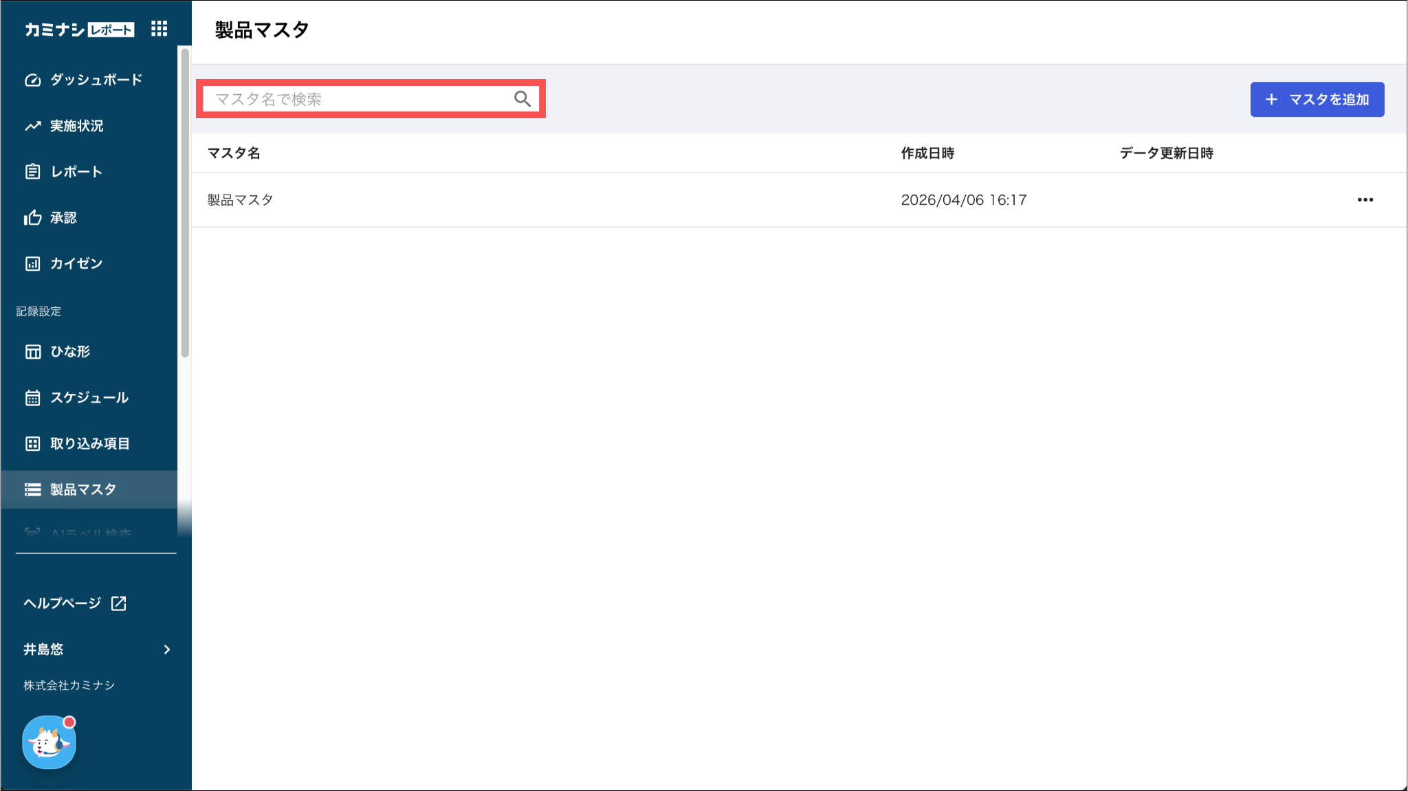 これにより、登録数が多い場合でも、目的のマスタを素早く見つけることができます。