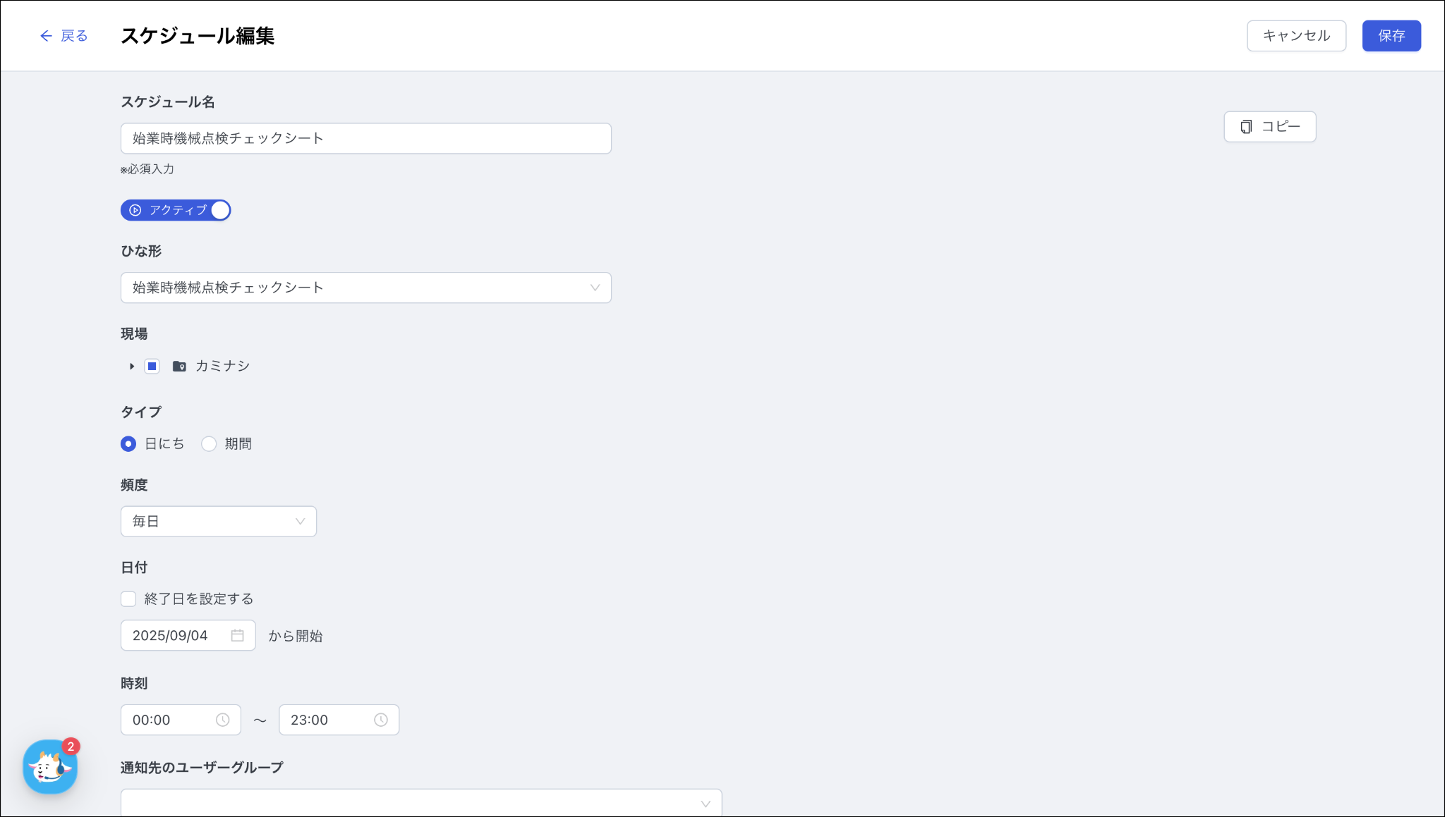 スケジュール設定の詳細は、「スケジュールを作成する」をご参照ください。