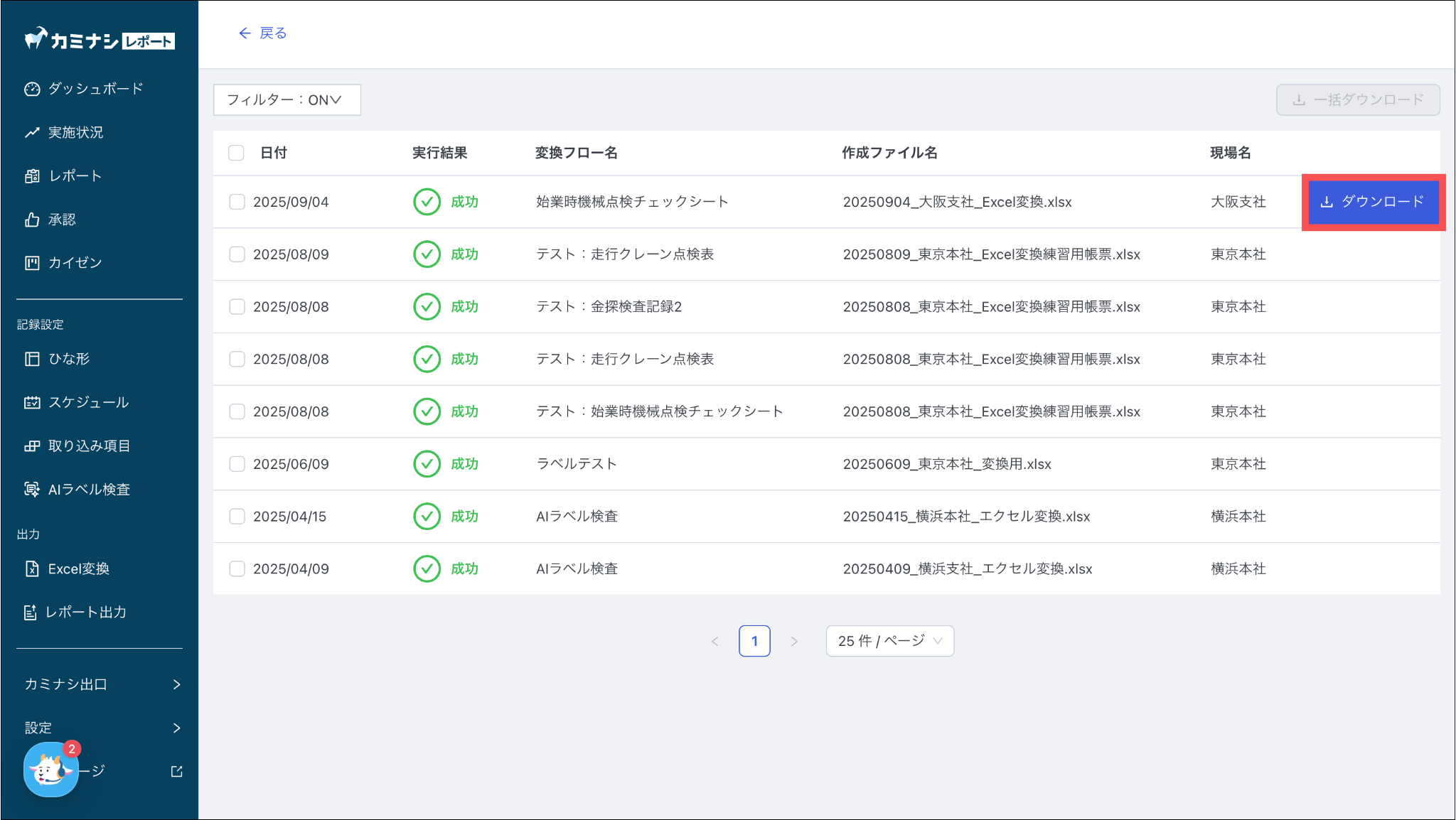 出力されたExcelファイルをダウンロードする