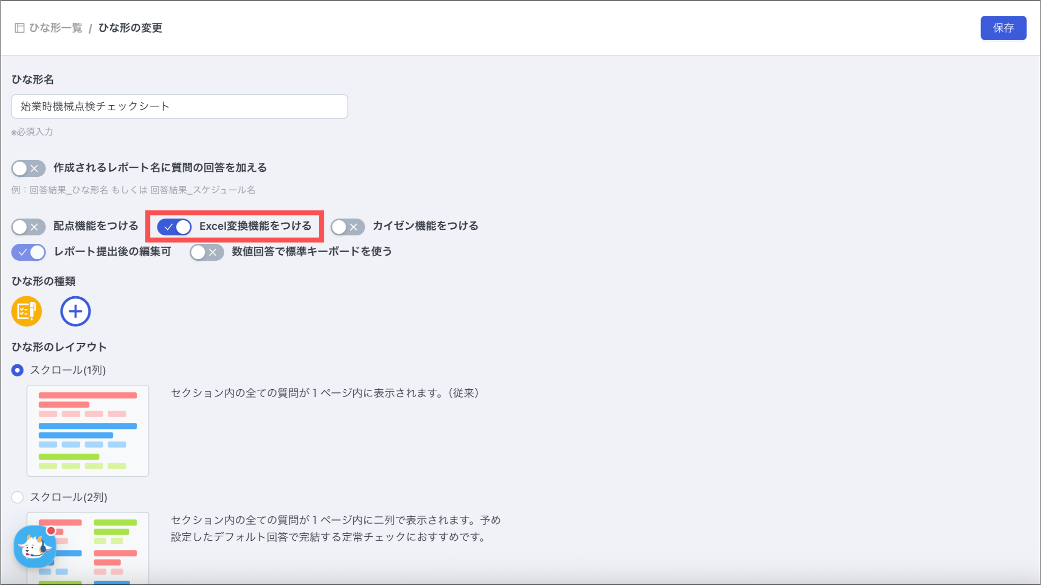 Excel変換フローでレポート提出時に出力する設定を行う