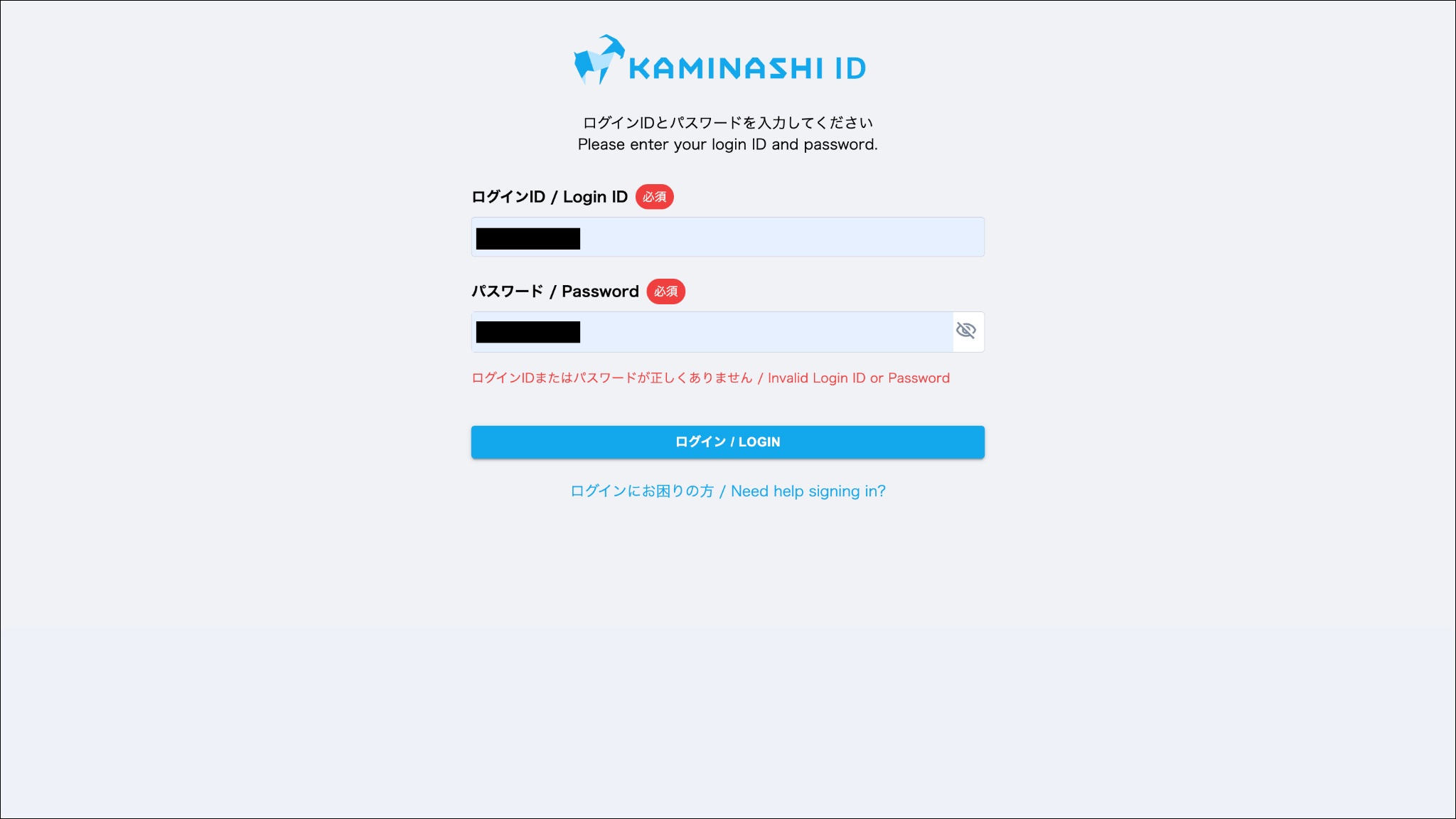 ログインIDやパスワードの打ち間違いはないか(大文字、小文字、スペースなど)