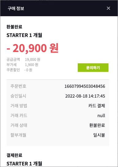 결제실패, 환불금액 등 자세한 결제내역을 확인하고 싶으시다면 상세내역을 클릭해 주세요.