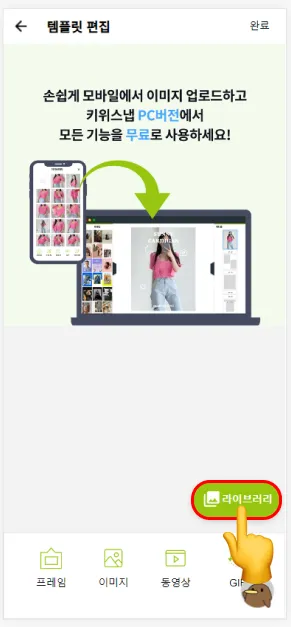 상품등록 및 라이브러리에 업로드만 가능합니다.