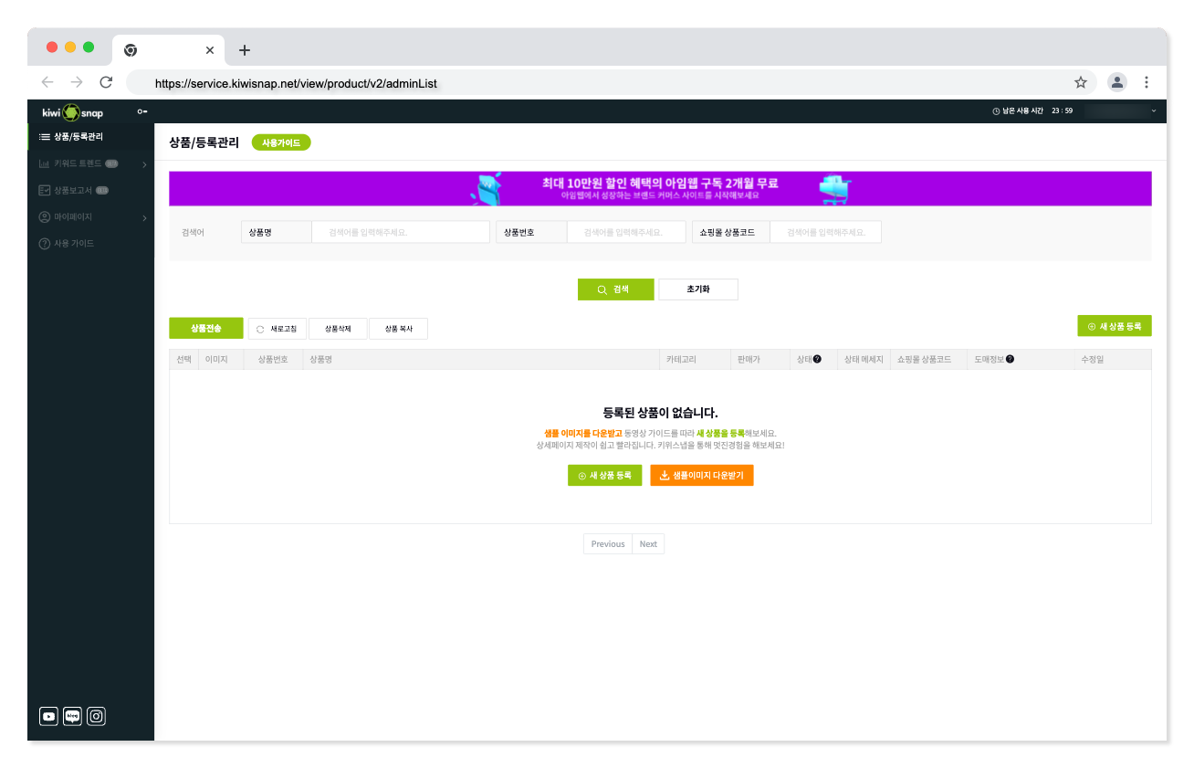 키위스냅에서 가장 먼저 시작할 작업은 상세페이지 제작입니다.