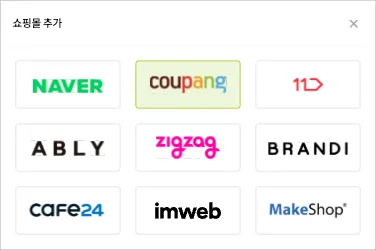 1. 마이페이지 > 쇼핑몰 연결에서 연결할 쇼핑몰을 추가할 수 있습니다.