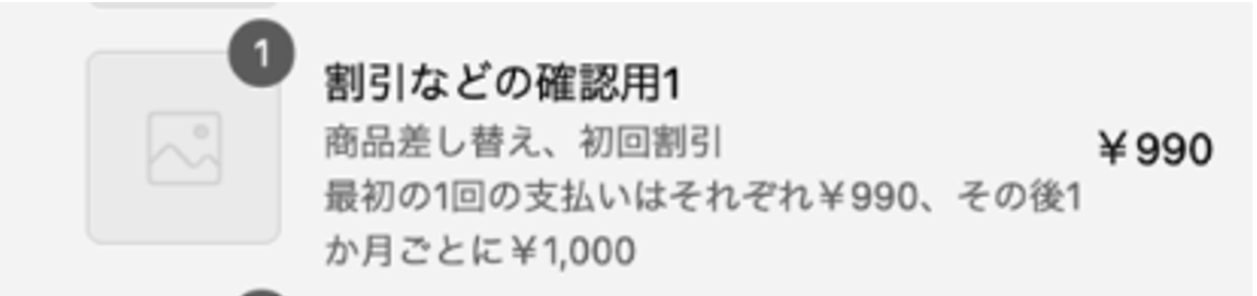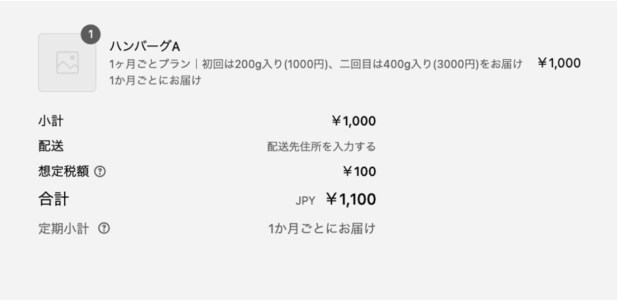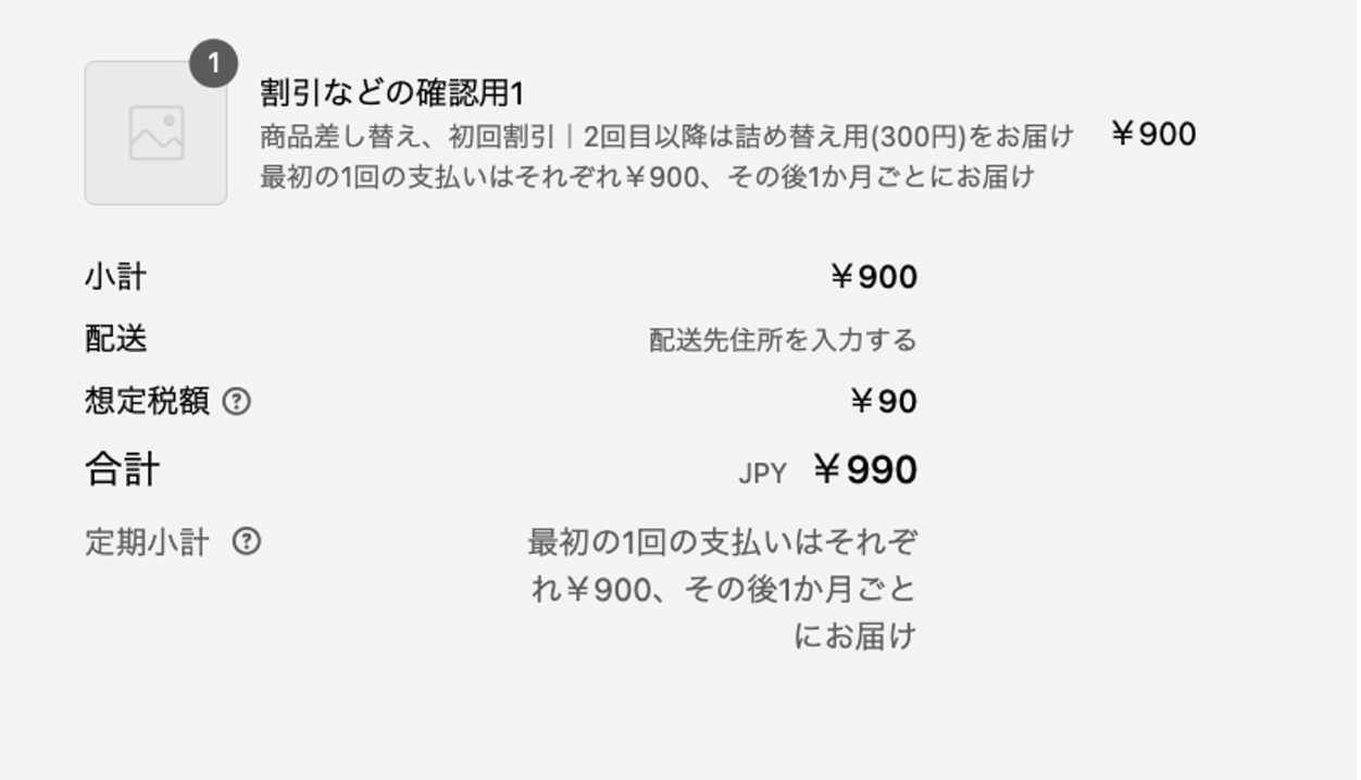 Shopifyの仕様上、上記部分は初回購入商品の金額・プラン周期に応じた内容が反映されると考えられ、下記ケースでは、正しい金額や周期が表示されない場合があります。