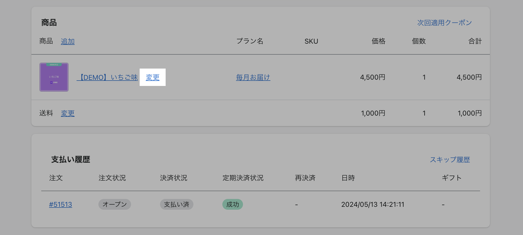定期契約作成後、ストア管理画面上の定期契約にも2回目以降の商品が表示されます。