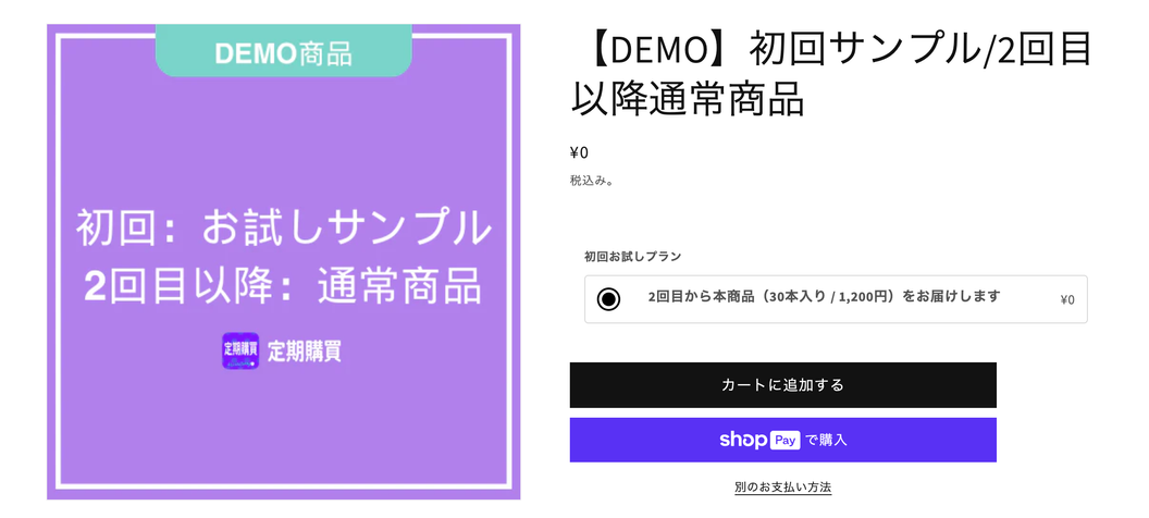 オンラインストア上の商品ページには通常の定期商品と同様の内容が表示されます。