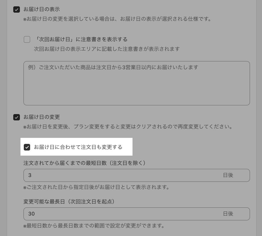 「お届け日に合わせて注文日も変更する」を有効にしていないストアであること