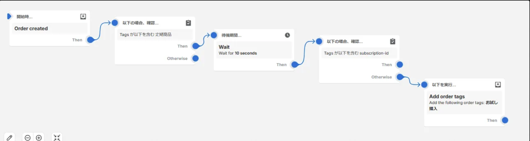 Shopify Flowで以下の条件でワークフローを作成: