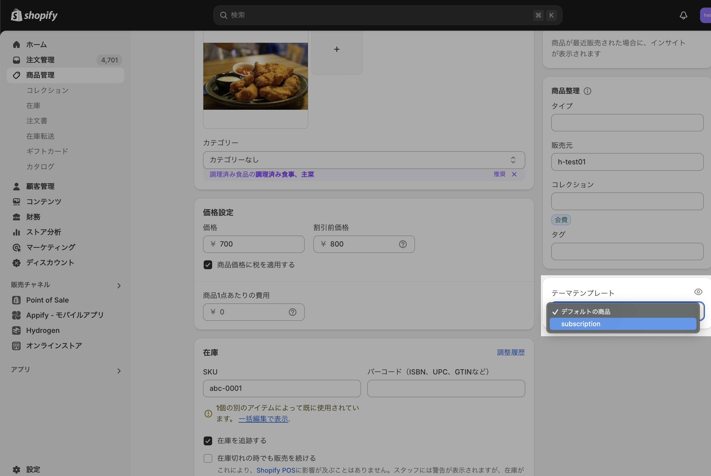 定期購入を行なっている商品のテンプレートを、1で作成したテンプレートに変更する