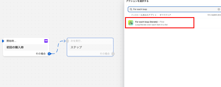 トリガー:定期購買アプリ「初回の購入時」を選択