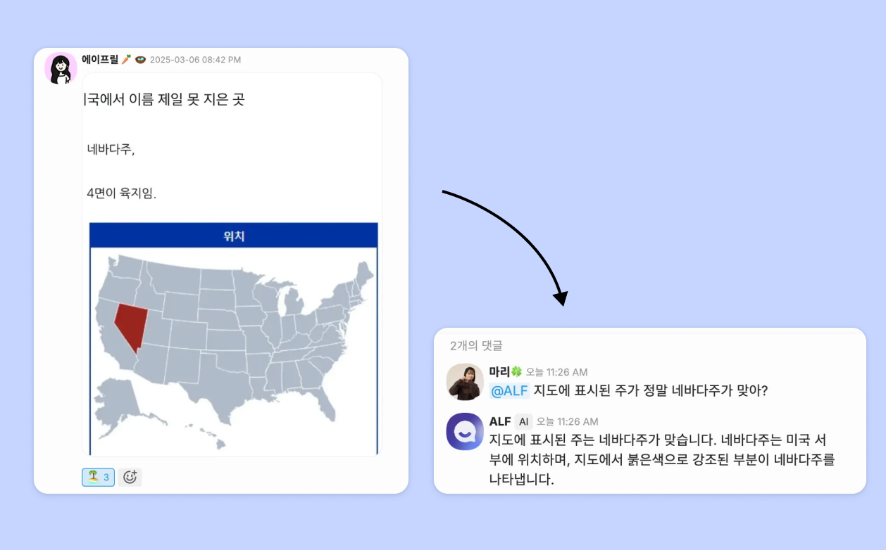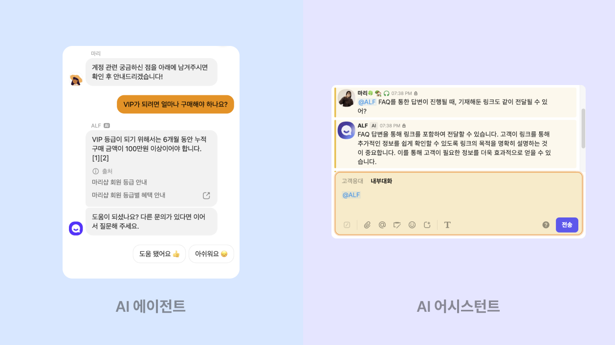 AI 에이전트 ALF는 고객과 주로 만나는 AI로, 고객의 질문에 답변하는 역할을 해왔어요.