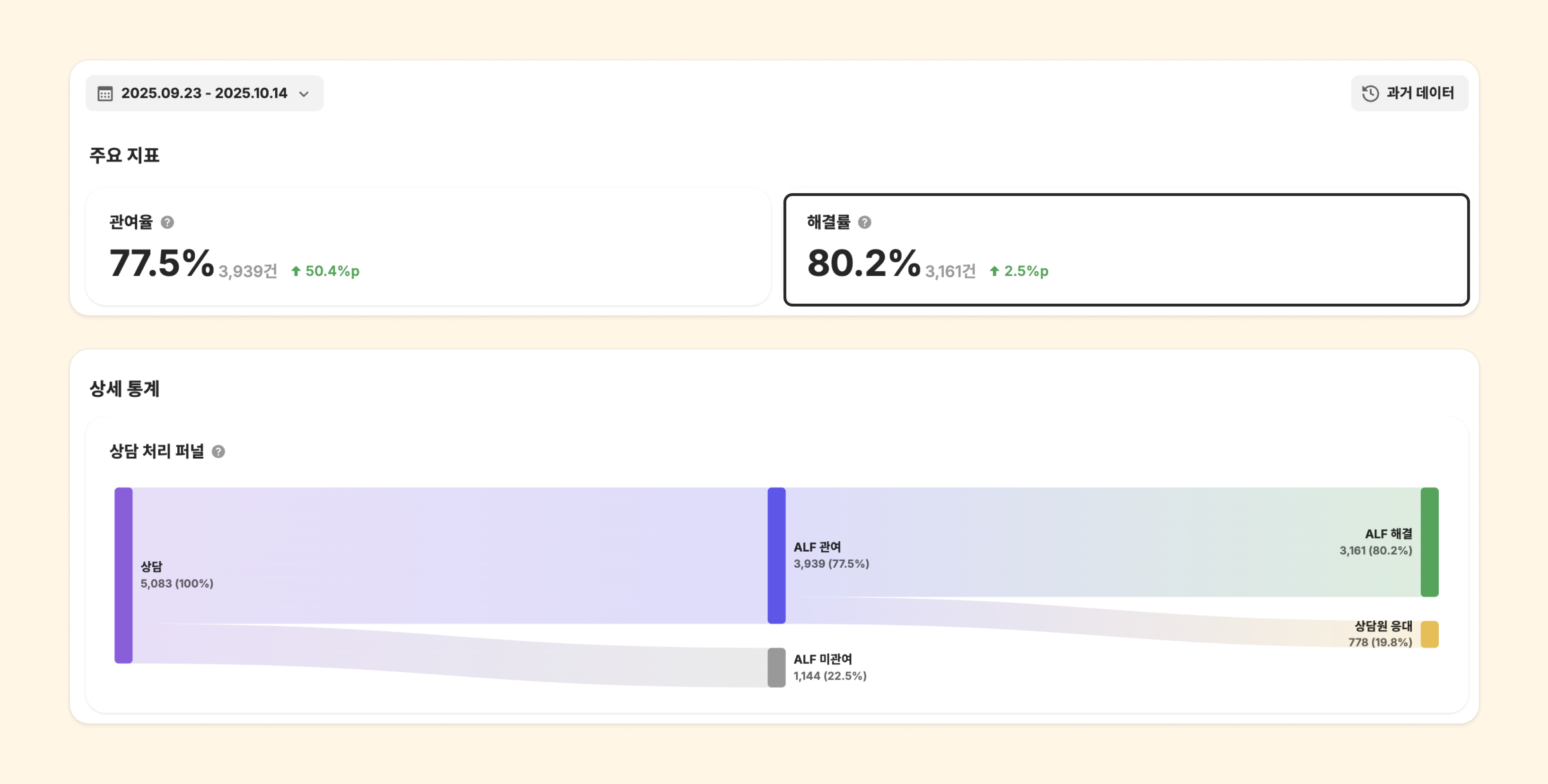 결론부터 말씀드리면 ALF v2 도입 약 한 달 만에 평균 해결률 80%를 달성했습니다 🎉