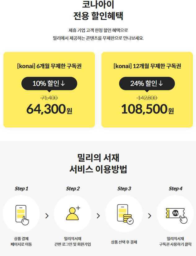 할인 적용 완료 후 밀리의 서재 충분히 즐기기