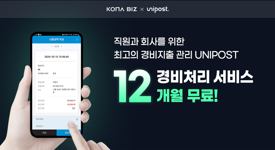 혜택 : 유니포스트 경비처리 서비스 12개월 무상 제공