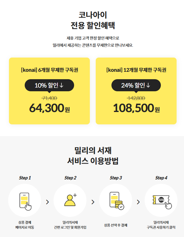 할인 적용 완료 후 밀리의 서재 충분히 즐기기