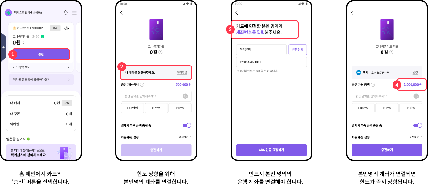 카드 등록 → 계좌 연결 시 결제 한도가 증액됩니다.