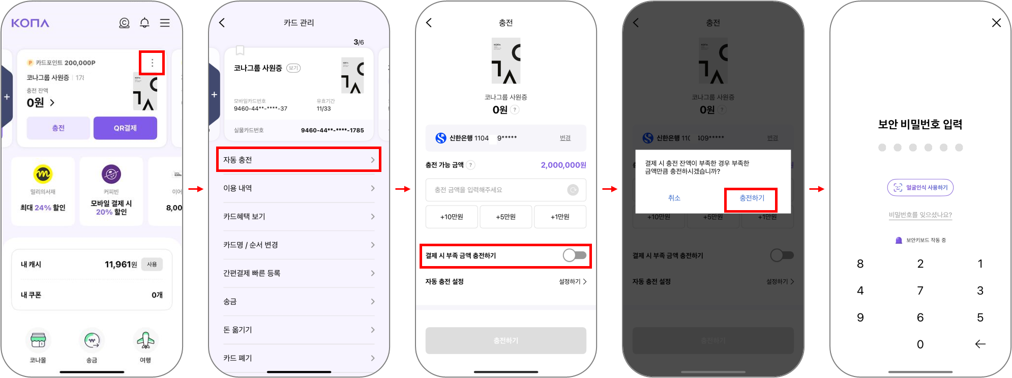 💡 코나카드 앱에서 자동충전 설정하는 방법을 안내드립니다.