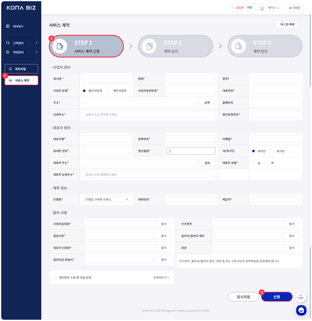 신청이 완료되면 코나비즈 담당자의 계약 심사가 진행됩니다.