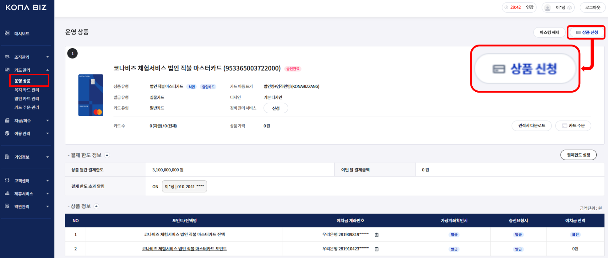 「운영상품」 - 「상품신청」