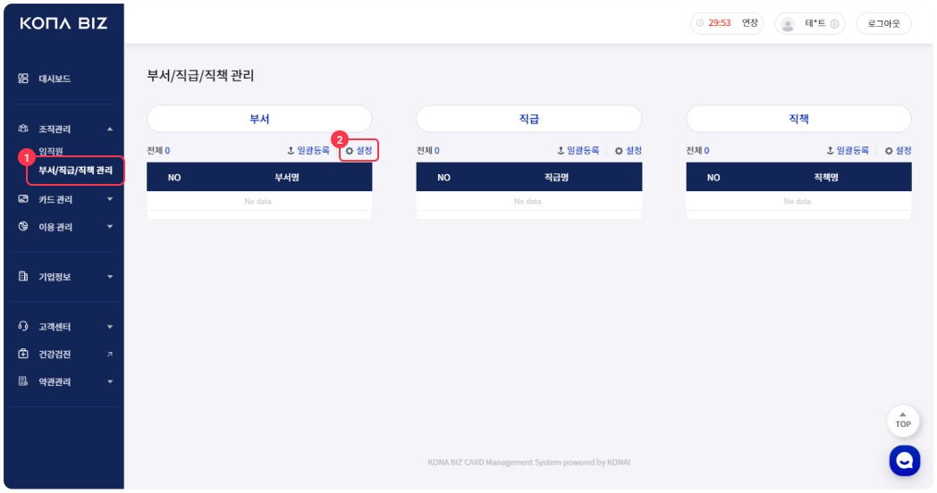 [조직관리] - [부서/직급/직책 관리] - 설정