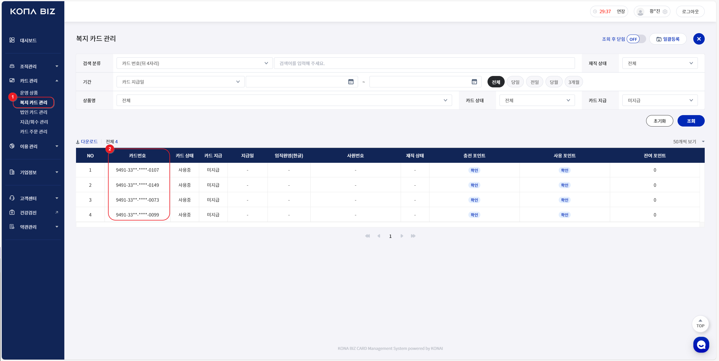 카드번호와 임직원이 매핑된 후에 포인트 지급이 가능합니다.