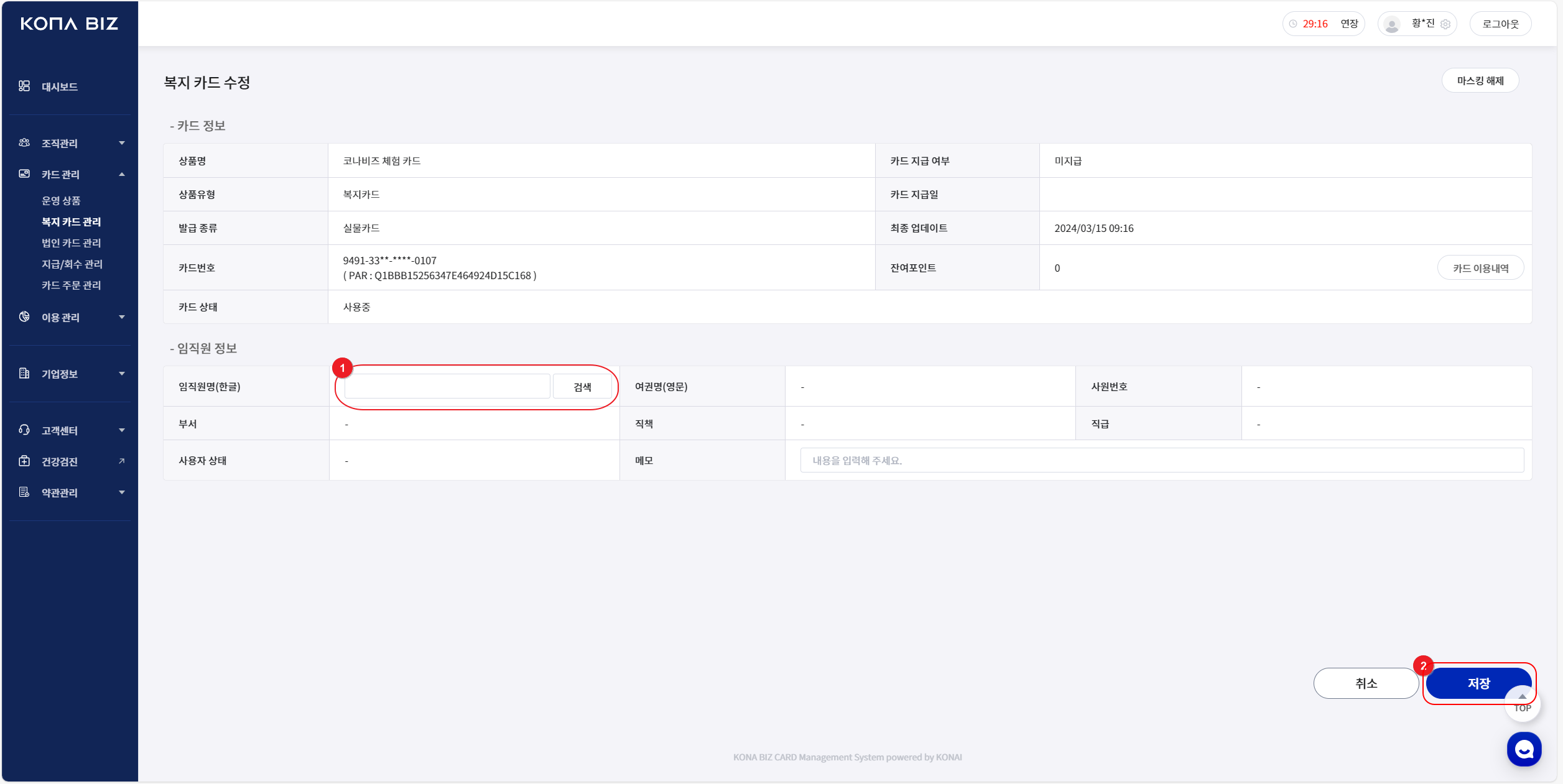 임직원이 사용할 카드를 임직원 정보와 매핑해주세요.