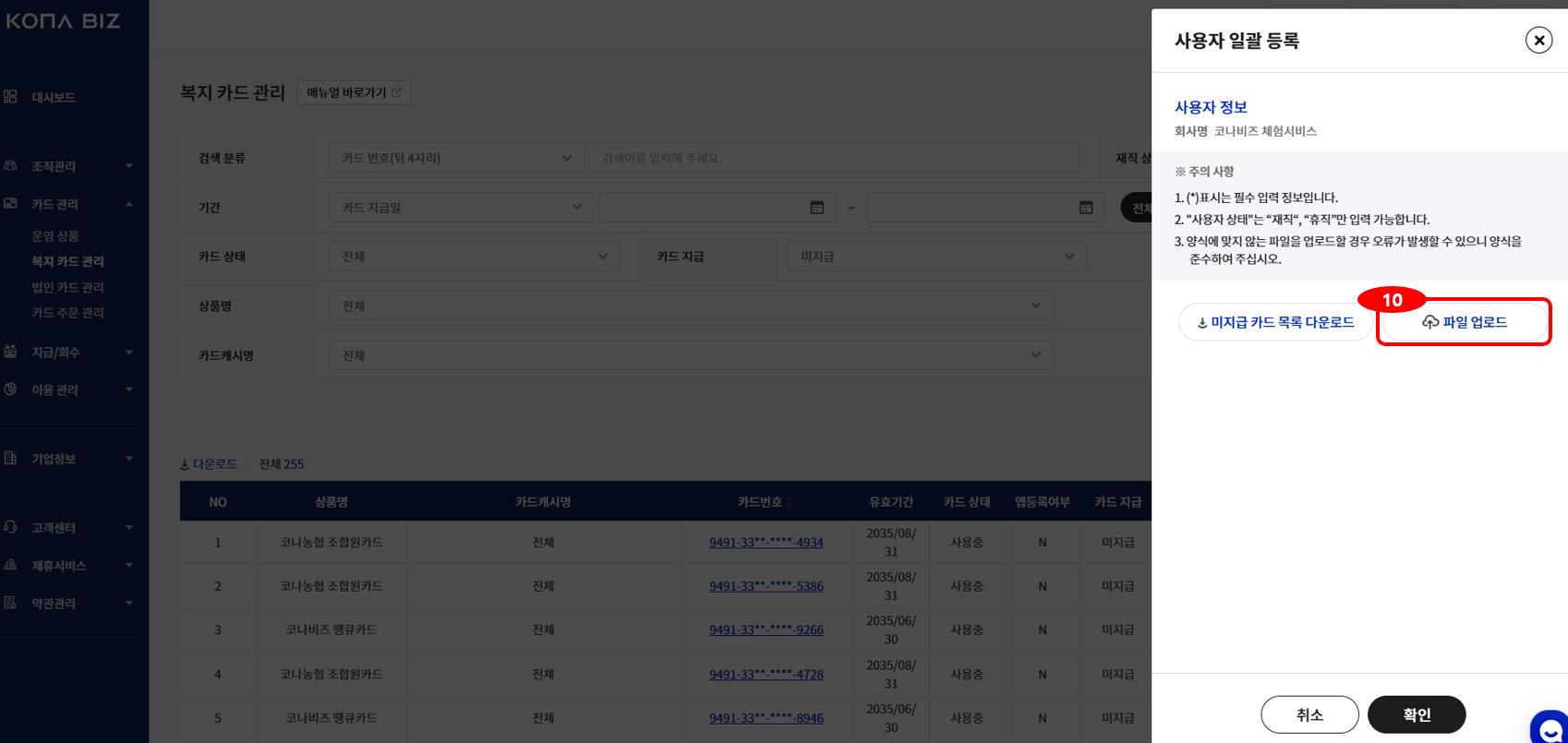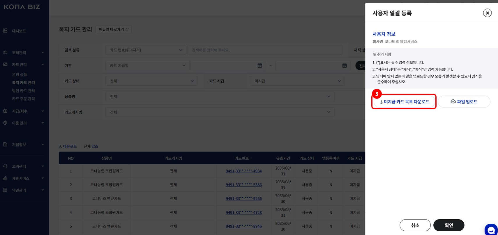 → 카드번호와 임직원이 매핑된 후에 포인트 지급이 가능하오니,참고 하시기 바랍니다.
