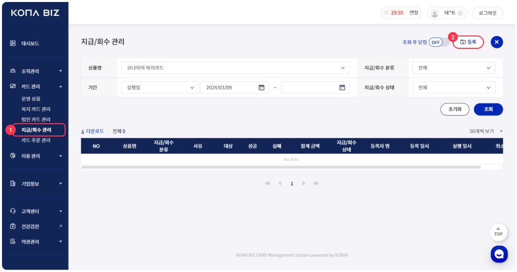 [지급/회수] - [지급/회수 관리] - 등록