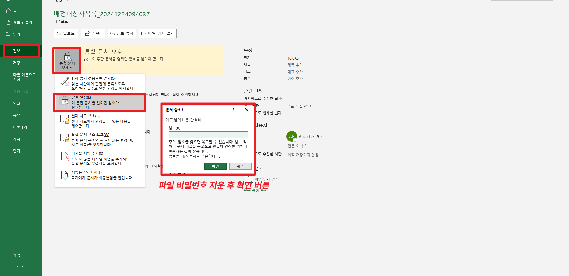 5.파일 비밀번호를 삭제 해주세요.