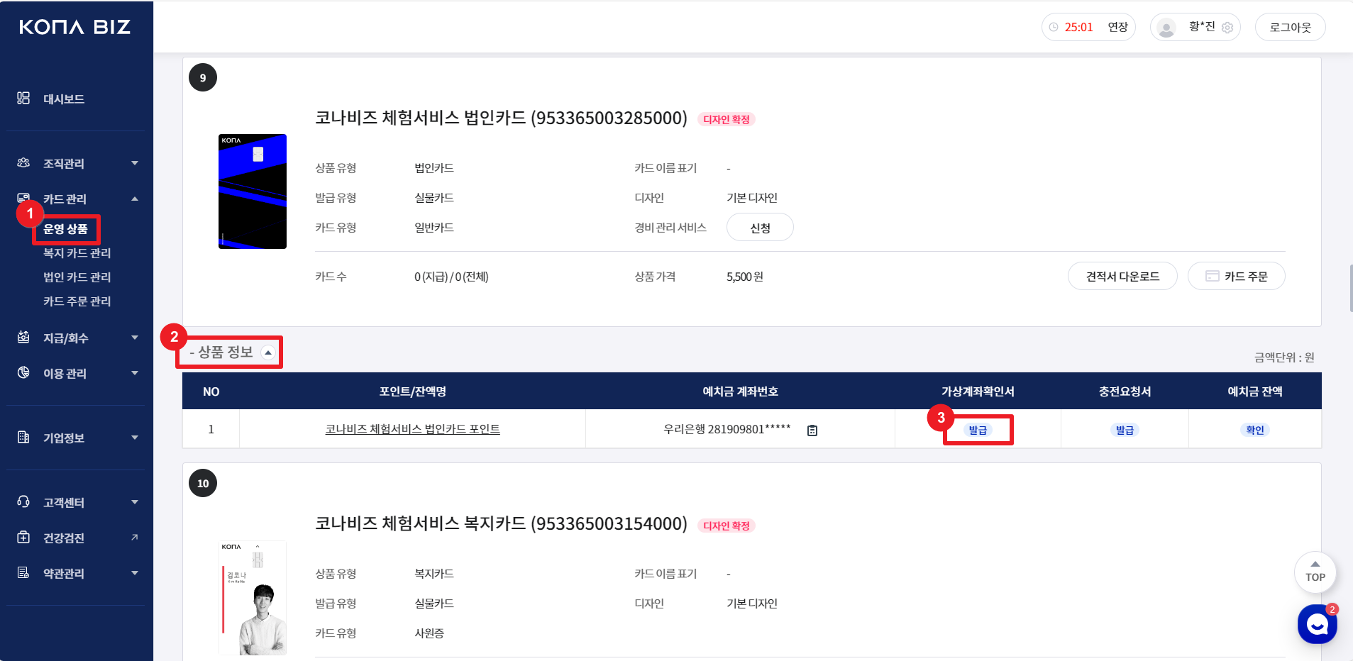 [운영 상품] - [상품 정보] - [가상계좌 확인서 발급]