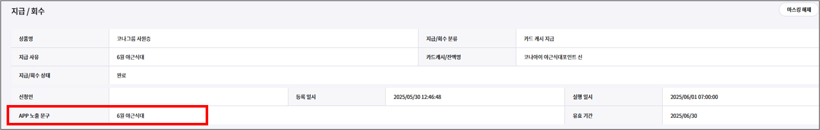 포인드 지급/회수 등록 시 기재한 APP 노출 문구 확인하는 방법
