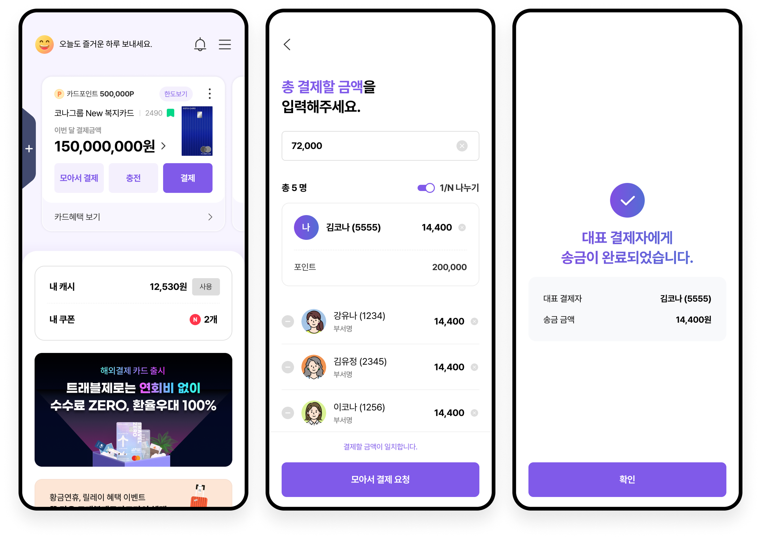 모든 구성원의 승인이 완료되지 않은 상태에서 결제하면 내 카드의 보유 금액으로 결제됩니다.