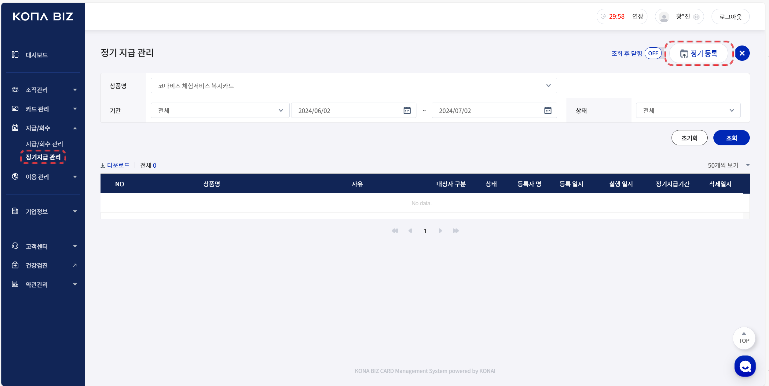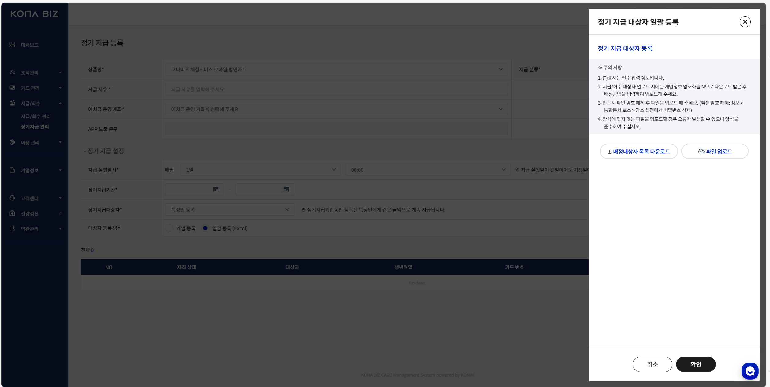 관리자페이지 > 지급/회수 > 정기지급 관리 ‘정기 등록’