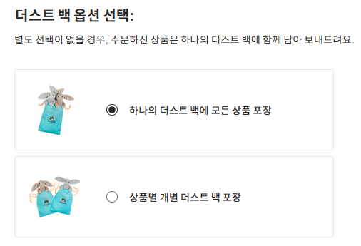 필요하신 경우, 결제 단계에서 상품별로 개별 파우치에 담길 수 있도록 옵션을 선택하실 수 있습니다.