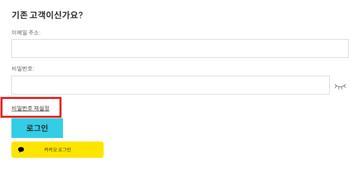 로그인이 안될 경우, [비밀번호 재설정]을 클릭하여 비밀번호를 다시 설정하여 주시기 바랍니다.