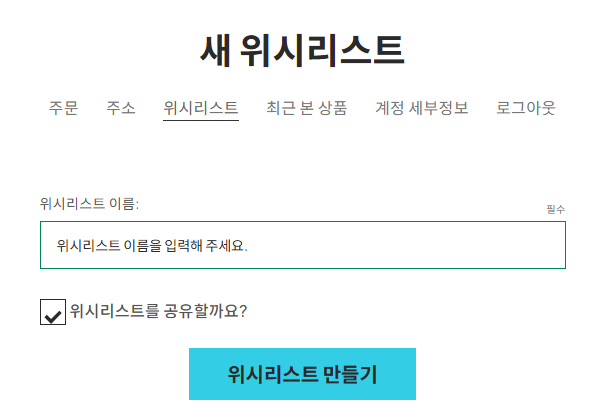 위시리스트를 만들면 공유 옵션을 사용할 수 있습니다.