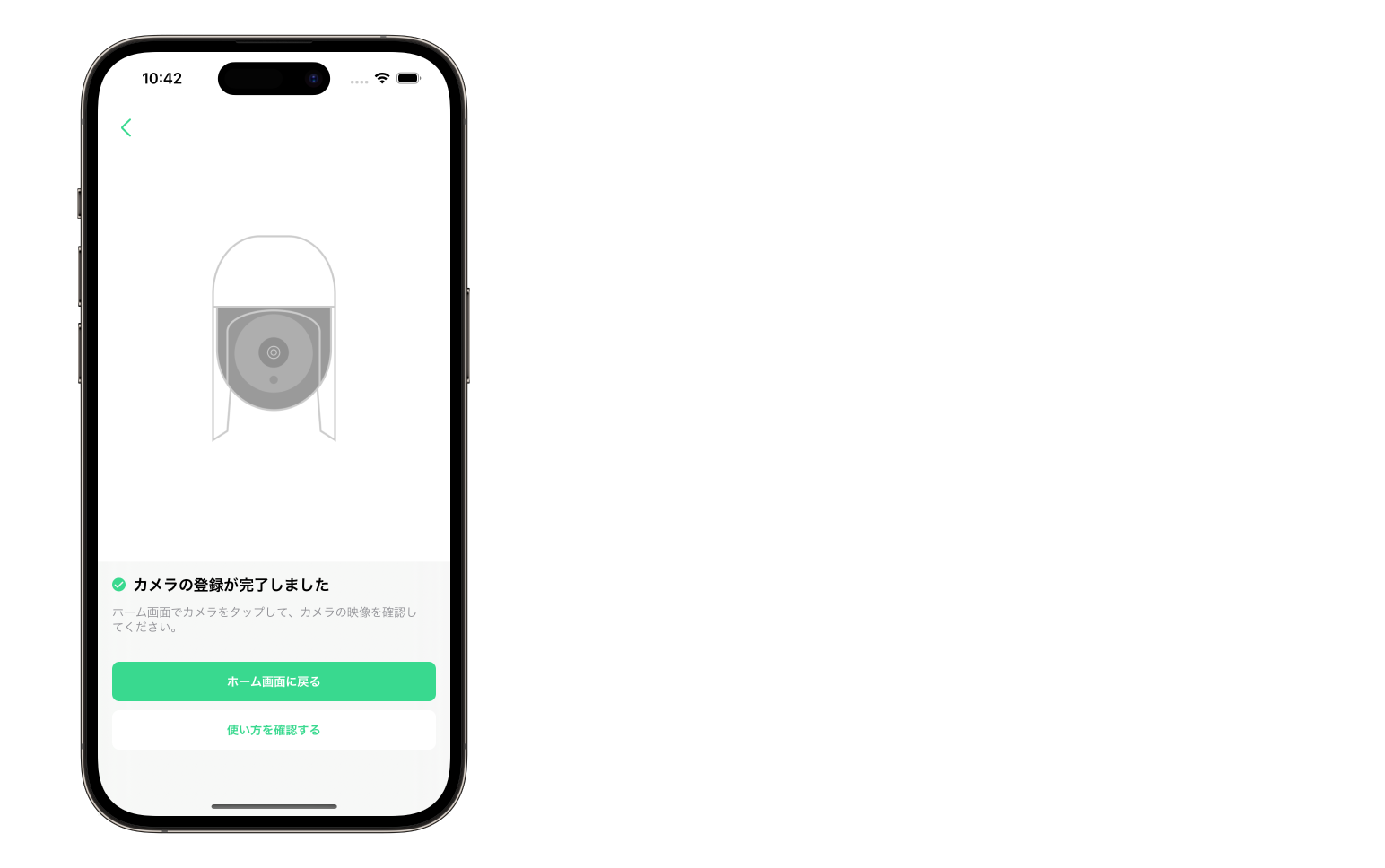 カメラの登録作業が完了するまでしばらく待ちます。カメラから音がなり、アプリの表示が登録完了画面になれば成功です。