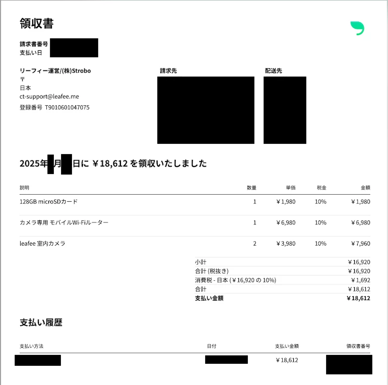 「宛名、購入日、商品名、領収金額、領収日、販売店」は領収書に記載されますか?
