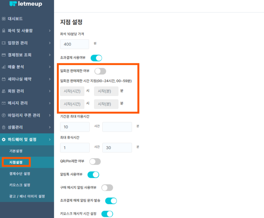 일회권 판매제한 여부를 활성화 시켜 주세요