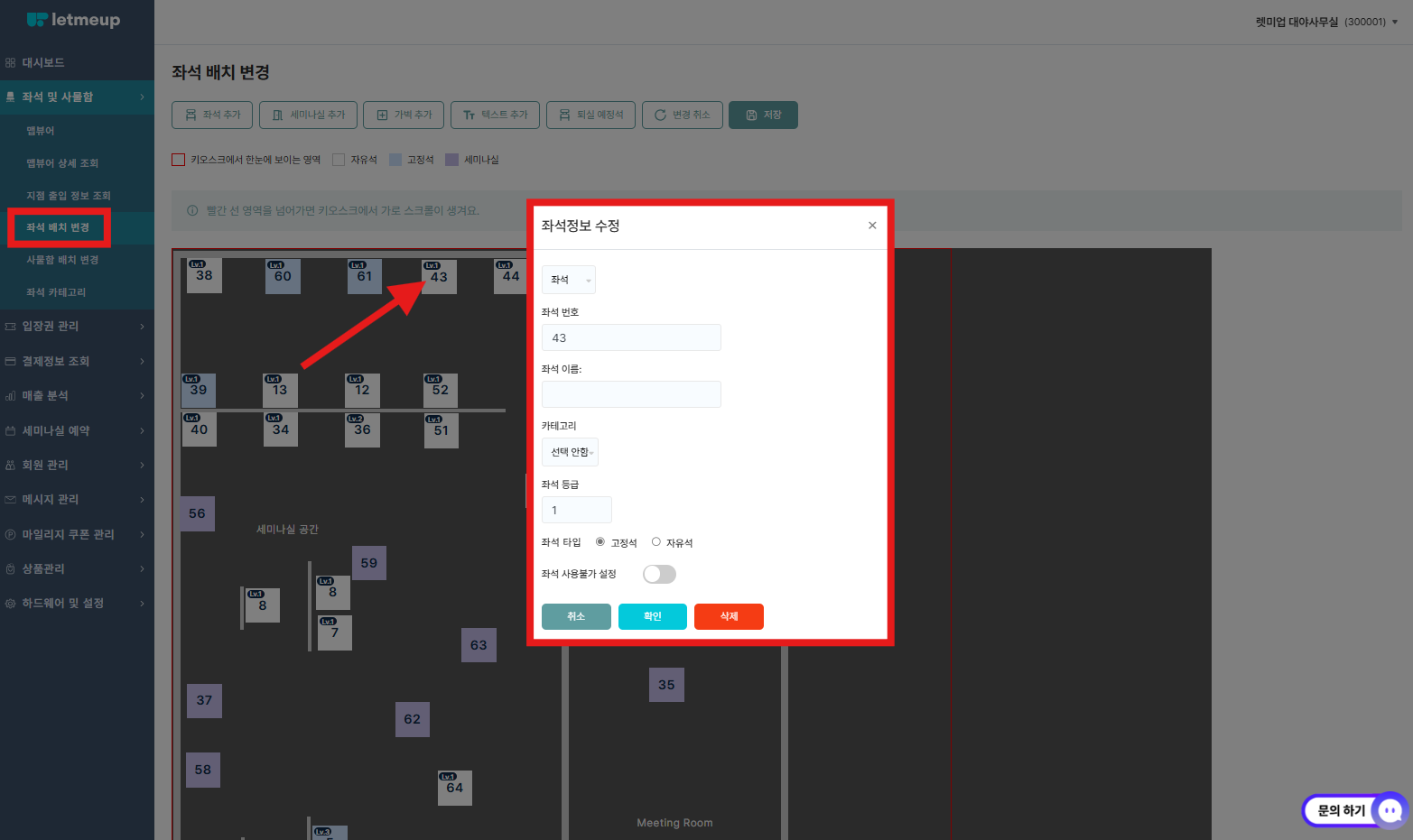 • 좌석 및 사물함 → 좌석 배치 변경