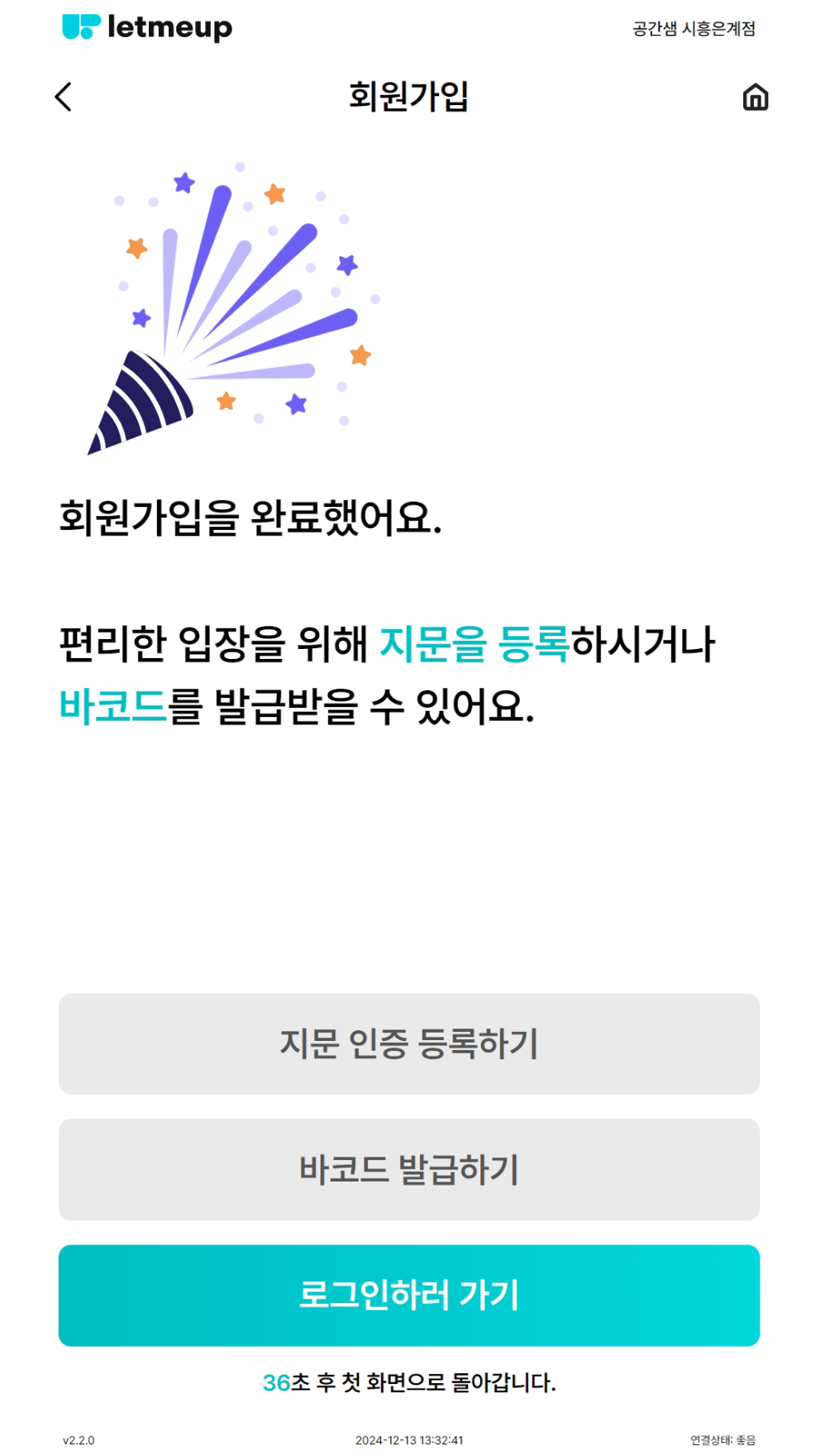 키오스크 메인 화면에서 회원가입 버튼클릭