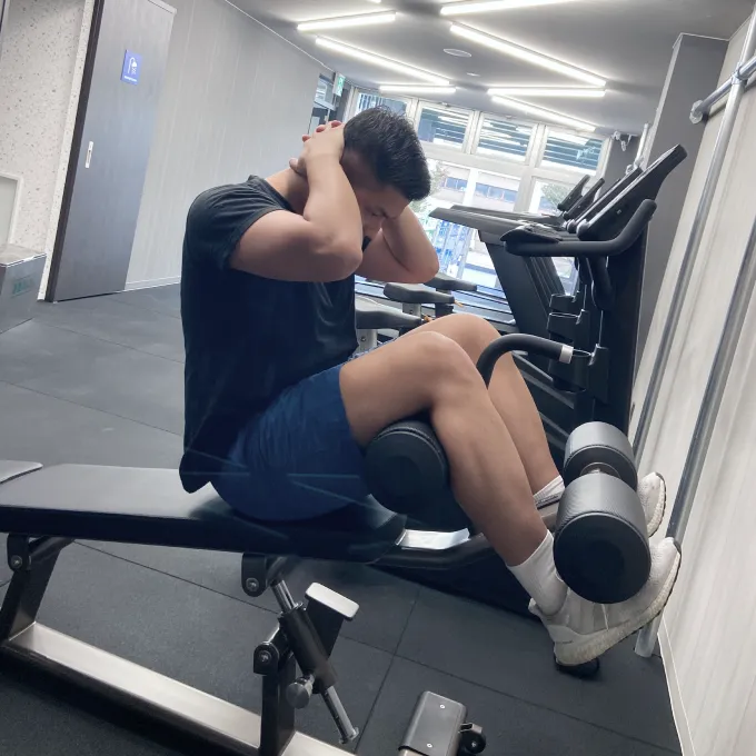 勢いで上げず、じっくり体を丸めましょう。